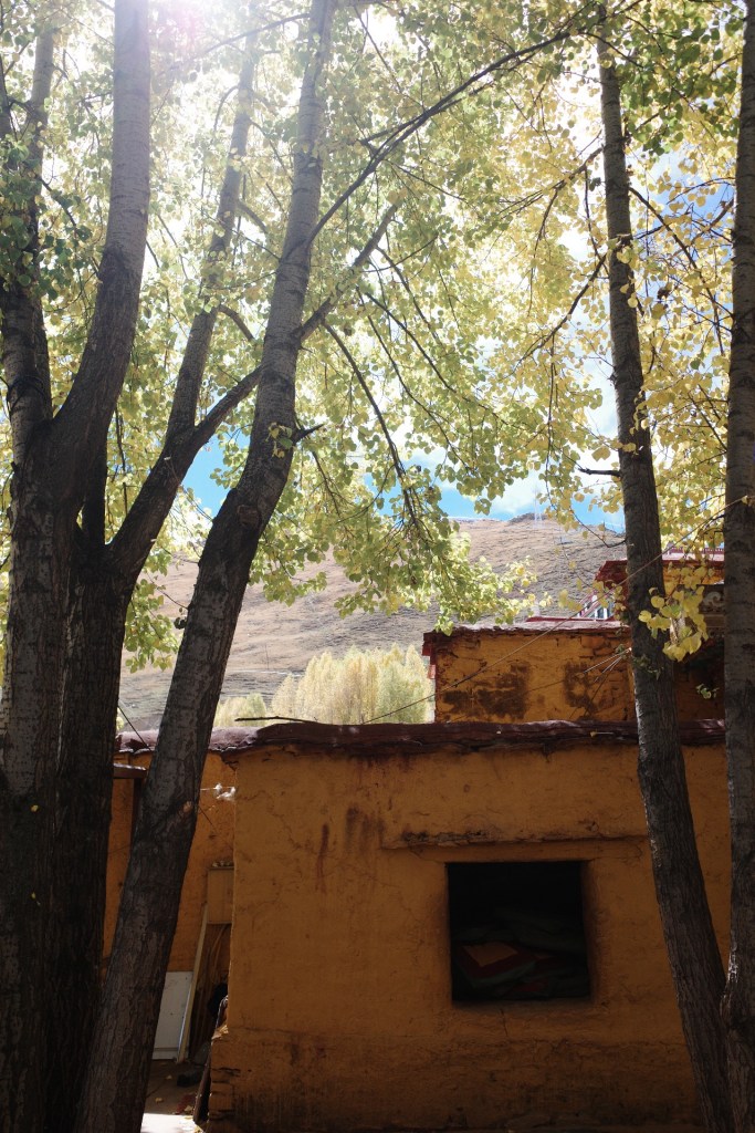 塘顶村因为地势更高,温度也更低,想着一会要走路,午饭没吃硬菜,那点热量在气温只有3度左右的室外走了几步下坡路就散去了。此刻被风吹地嗡嗡响的脑袋瓜非常后悔临走前还是选择了棒球帽,而把红色的羊毛帽留在了家里。一路下坡,公路边的风景如果在一周前的某个晴天来应该还是很不错的,只是此刻金色的稻子已被收割,只留下空旷荒芜的梯田。天空愁云惨淡,村子也只有零星游客,死气沉沉,几株百年银杏也无法点亮这沉郁的气场。一路走来也没看到适合泡着小资一下的咖啡馆,倒不如本着来都来了的精神走完这条小环线吧。虽然不到两个小时就要天黑了,但是这种在景区内的线路也没啥好担心的。