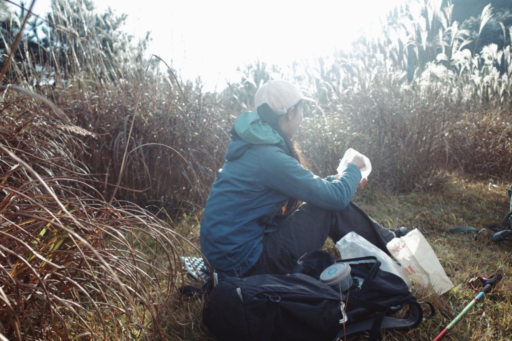 来到一块被芦苇环抱的小空地,趁着太阳还没完全下山,疲惫不堪的我们终于卸下了包,开启吃喝模式。左拿出了背了一路的新买的炉头和气罐准备煮茶,但是没想到发生了大乌龙:随炉头附赠的点火器竟然怎么都打不着火… 🤦,只能默默又塞回包里。