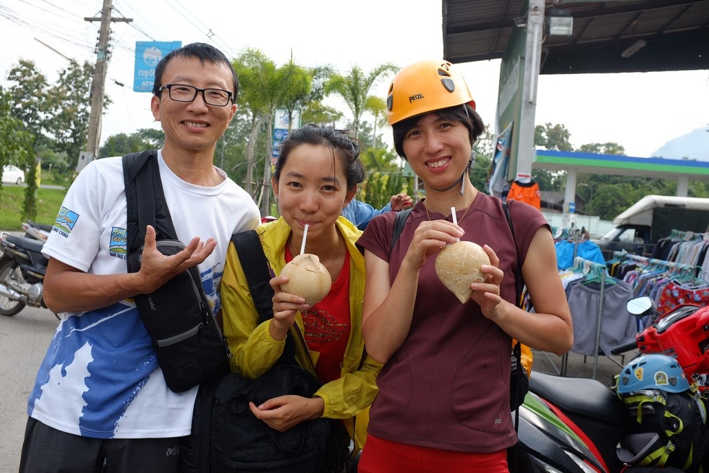 在难题还没到清迈前就通过微信交流了几句,这家伙很霸气地发来一句,到时候带着你混。我心想,靠!打错了?一个第一次来清迈的人说要带我这个在这住了个把月的人混?事实证明他是对的,先不说他带着我去了crazy horse 让我尝试了人生中第一次野攀(这个地方就算我自己能去到但是也没有装备啊,光锁和快挂就估计有十几斤还不算那些绳子),就连我天天走的路,人家看了一眼地图就知道怎么走更近了。最后连饭馆我也失去发言权了。这个也不能怪我,个人口味不同而且我的确对那些榜上有名的餐馆不感冒啊。由于本人的后知后觉临到他们要走了才意识到跟着他们夫妻的那两男人就是传说中的土豪,难题后来一个劲怨我没有在土豪在的时候带他们去night bazaar ,不然大家都有免费的大龙虾吃,😄总之这个地陪做地又以失败告终,上次姐姐妹妹走掉后还发誓要努力提高业务水平,哎。不过跟他们几个人玩的还挺开心的,虽然都是第一次见面,我感觉难题和我都放地挺开,难题的老婆看着也挺外向的不过我问到她的攀岩经历时感觉有些爱理不理的,好吧,那就往事不要再提吧。至于土豪叔叔们,我的生活圈子和他们差得太远没有太多共同语言。五人一起吃饭的时候倒也其乐融融。