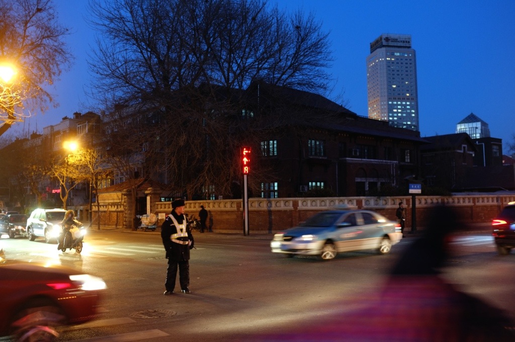 天津其实还是一座挺浪漫的城市,被殖民过的缘故,有很多充满异国风情的建筑,可是那感觉和上海完全不同,更冷的空气更宽的借到和更风骨的大树,为这街头平添一番大气和萧飒。我虽然在那里住了两晚,但是正赶上降温,第一天傍晚打个的去五大道,一路上坐在的士里看这城市的街景,这座城有很多好看的桥,在城市繁华地段,摩天高楼和北上广有的一拼不过人口密度却只有大城市的十分之一吧,我问司机大爷这人都上哪儿去了,大爷说那么冷的天谁愿意在外面呆着呀,言下之意只有你这个傻子还在外面转悠,我很想说,就因为我转悠您才优活拉呀,可我知道这话说出来是要被鄙视的,因为大业也想早点回去,天津的司机可挑活呢。杨帆说天津人比较宅,不爱折腾,生活节奏特别慢,回想起来在全国各地旅行的时候真的很少碰见天津人呢,杨帆说他在上海工作期间遇见一个天津人来此出差,对方得知他是天津人之后说你跑这地方干嘛来了?呵呵,以前和他接触不多,这才发现这家伙挺能贫的,话说郭德纲也是天津的呢,所以天津的的士司机唠起来可不比北京的逊色呀。下了车已经快天黑了,寒风瑟瑟,我这小身板可经不起吹呀,没几分钟就快冻成面瘫了,也没了扫街的兴致,匆匆按了几下快门变打到回俯这种地方,还是比较适合夏日夜晚,或者秋冬的暖暖午后吧。第二天继续低温,和师姐们相约逛了一下大悲寺就冷地胃都疼,于是速速赶去了吴同学所在的地方耗了一下午,第二天貌似回温了,不过又在Vivian家帮忙带娃,留个念想吧,下次再好好地看看这座城。
