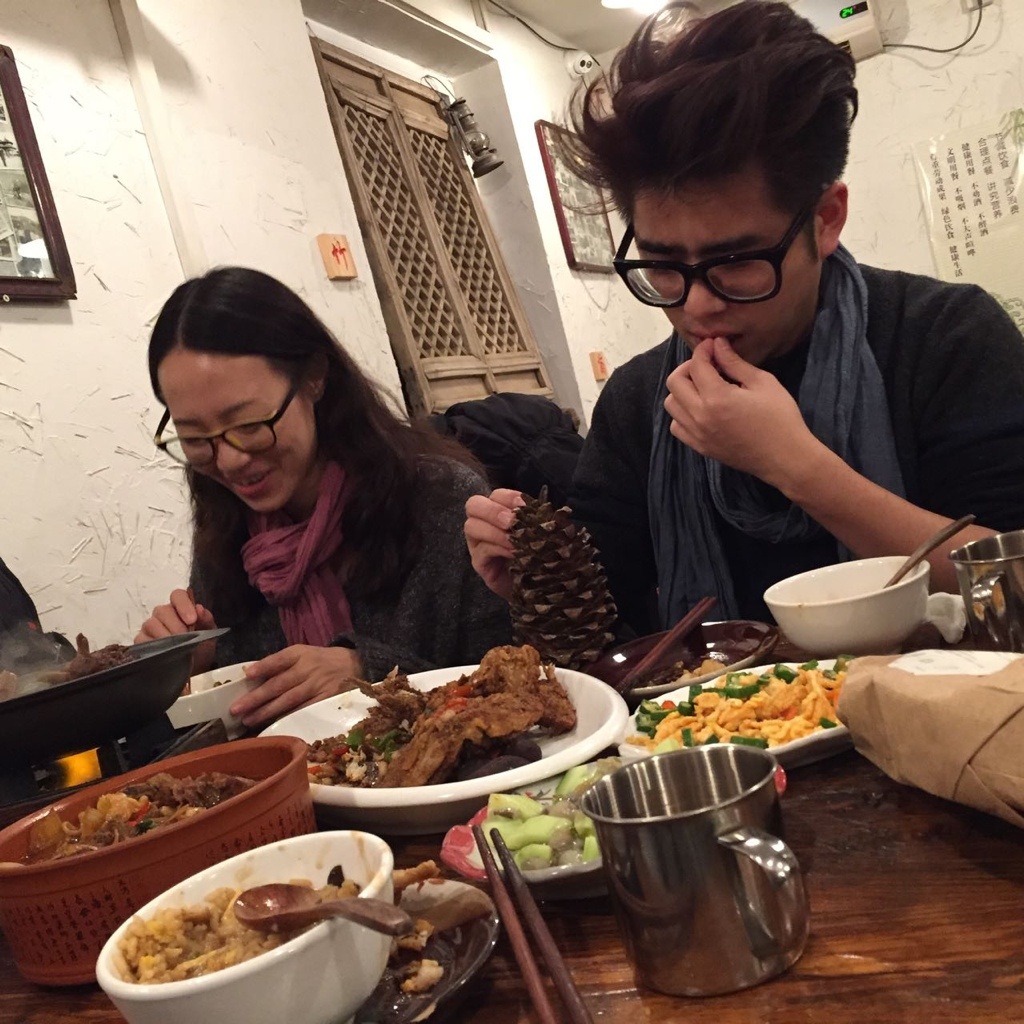 于是第二天早上就说好和她碰个头,令我意外的是,还见到了德音师兄。德音师兄我在山上最亲近的人,我们一起搭班去厨房帮忙,她总是默默干活,念经,转塔,回到僚房早早歇息,不像其他三姑六婆一样爱嚼舌根,我们的感情便在细菜切菜的无间配合中默默滋长,在她离开的那天,我也加入了送行的队伍,等她上了小巴后我发现自己的眼眶有些湿润。我当时以为此一别,下一次见面也遥遥无期了吧,没想到那么快又有了重逢的机缘,还真不知道她也是天津人呐。那么冷的天,两位阿姨特意出门来见我,抢着付钱给我买好吃的,平时都是不舍得花一分钱坐出租的人打的送我去朋友那儿,德音师兄还带了很多贴心的礼物给我,有师父的照片,鸡足山的挂历,小零食,见我拍照时手冻着还把自己的手套给了我,真是像对待自己闺女一样待我啊。虽然身体冻地僵硬,心却暖地化开来。只可惜这次实在是冷的没时间和他们多逛逛,德方师兄给我买的小吃也吃不下,真是过意不去,只能留待下次好好补偿了。