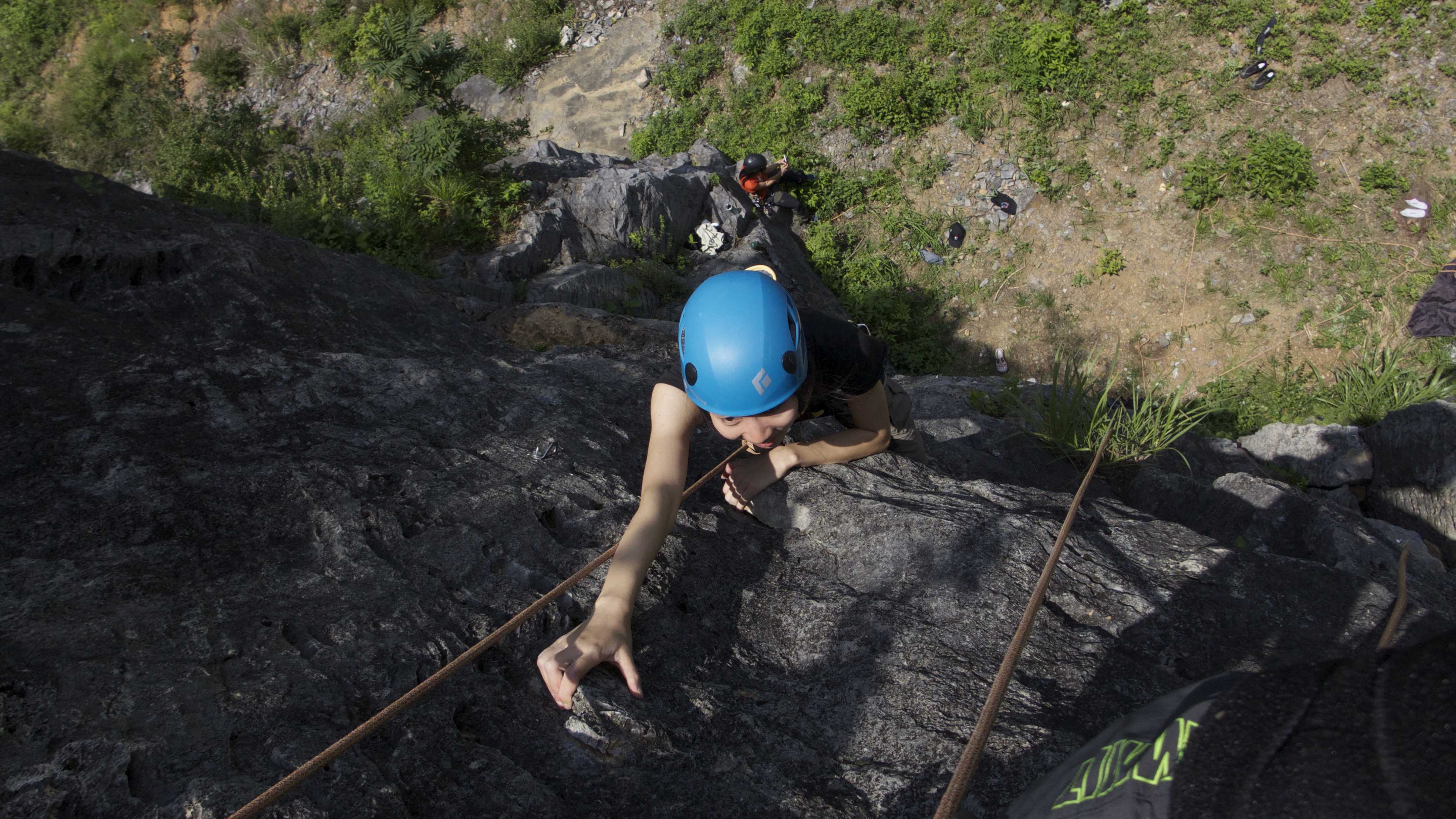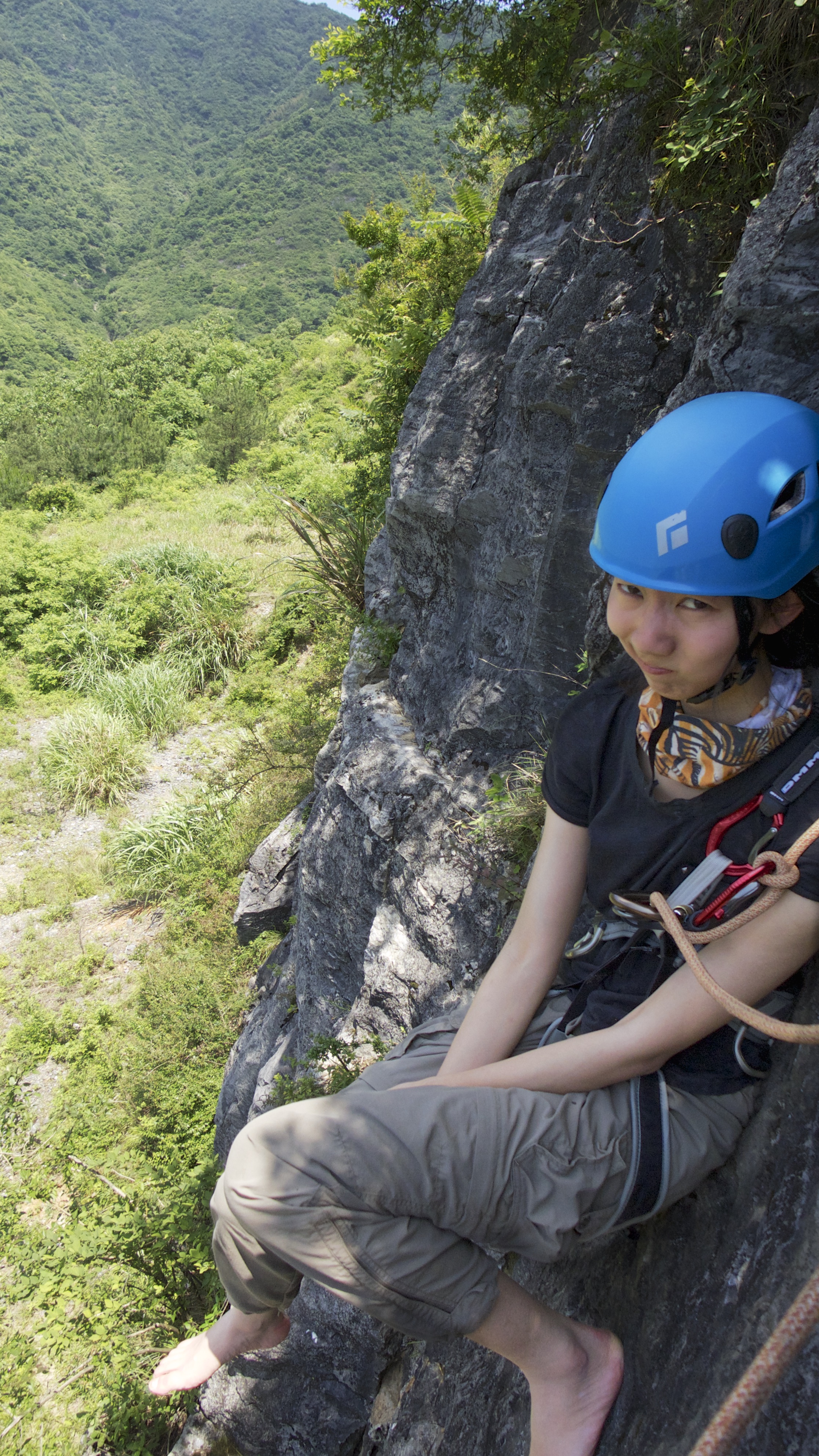 2. 谁知道跟难题喝个咖啡还喝出了一次说走就走的旅行。就这么坐着绿皮车去衢州野了。每天白天各种折腾,傍晚上课,晚上听着他的呼声断断续续地😪,每天就睡几个小时。累是累,不过还是玩的很爽,攀岩(虽然就爬了三次),骑车(骑了12公里就爆胎了),速降(别人是速降但是我是乌龟降),扁带到是意料之外的好玩,原来真的可以像小龙女那样躺在一根绳子上不掉下来甚至可以睡着!开着摩托车去无人的大山里瞎转,抱着男人的腰坐在摩托车上飞驰,心里想着这一幕如果发生在18岁的时候多好啊! 认识了刚刚高中毕业的梦蝶小朋友,看着弱弱的其实就是个女汉子啊,速降嫌无聊,扁带练了一个小时就可以做高难度动作了。