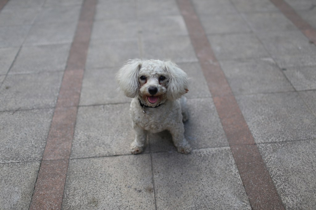 4/29 遇见了Lucky,一只白色小贵宾突然出现在我视线,虽然脖子上有颈圈,但是脏兮兮的,身体是白的,脸是灰黑的,眼睛下面有很长很明显的深红色的泪痕,感觉几百年没洗过澡了。我以为它是流浪狗。后来他们说它是一户四川人散养的,因为生了小孩子,就不太管它了,可能只是在院子里给它留了一个窝,其余的就任它自身自灭了。它就独自在诺大的小区里神出鬼没,有谁给它点吃的她就欢天喜地地追着跑。我看到它嘴里叼着被踩扁的牛奶盒子奔跑着,一会就不见了。等我回家的时候又看到它在我家门口,于是我回家拿了点牛肉出来,它吃了一块就做我的跟屁虫了,我把另外三块给了另一只很瘦很瘦的狗,后来我知道它叫阿汪。Lucky没有因为我就给它一块而对我失望,还是屁颠屁颠地跟我回家,我又喂了它一点肉丝,狼吞虎咽地吃完后眼巴巴地望着我,把头探进篱笆里,我狠心地回房间,再出去它就不在了,第二第三天我都没再看到它。我好希望妈妈能养它呀……