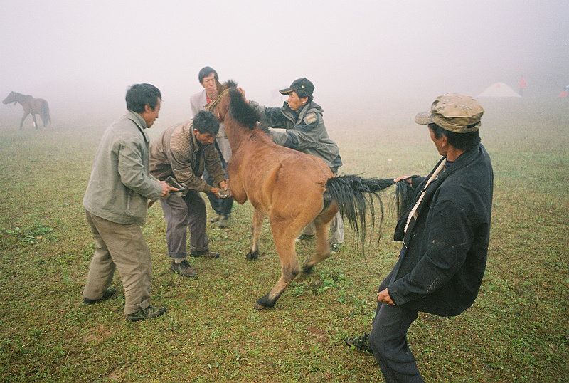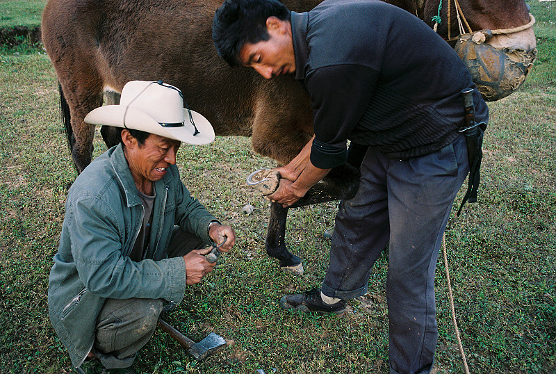 每天晚上我在我的帐篷里睡在防潮垫上盖着羽绒睡袋都瑟瑟发抖,而他们用竹竿把尼龙布一撑就当一个睡袋了。每天扎营后草地上堆满了各种各样的家伙,但是早上拔营的时候很神奇的他们都能很迅速地把这些一家一当收纳到一个个布袋子里面再放入大大的蛇皮袋驮在马背上。