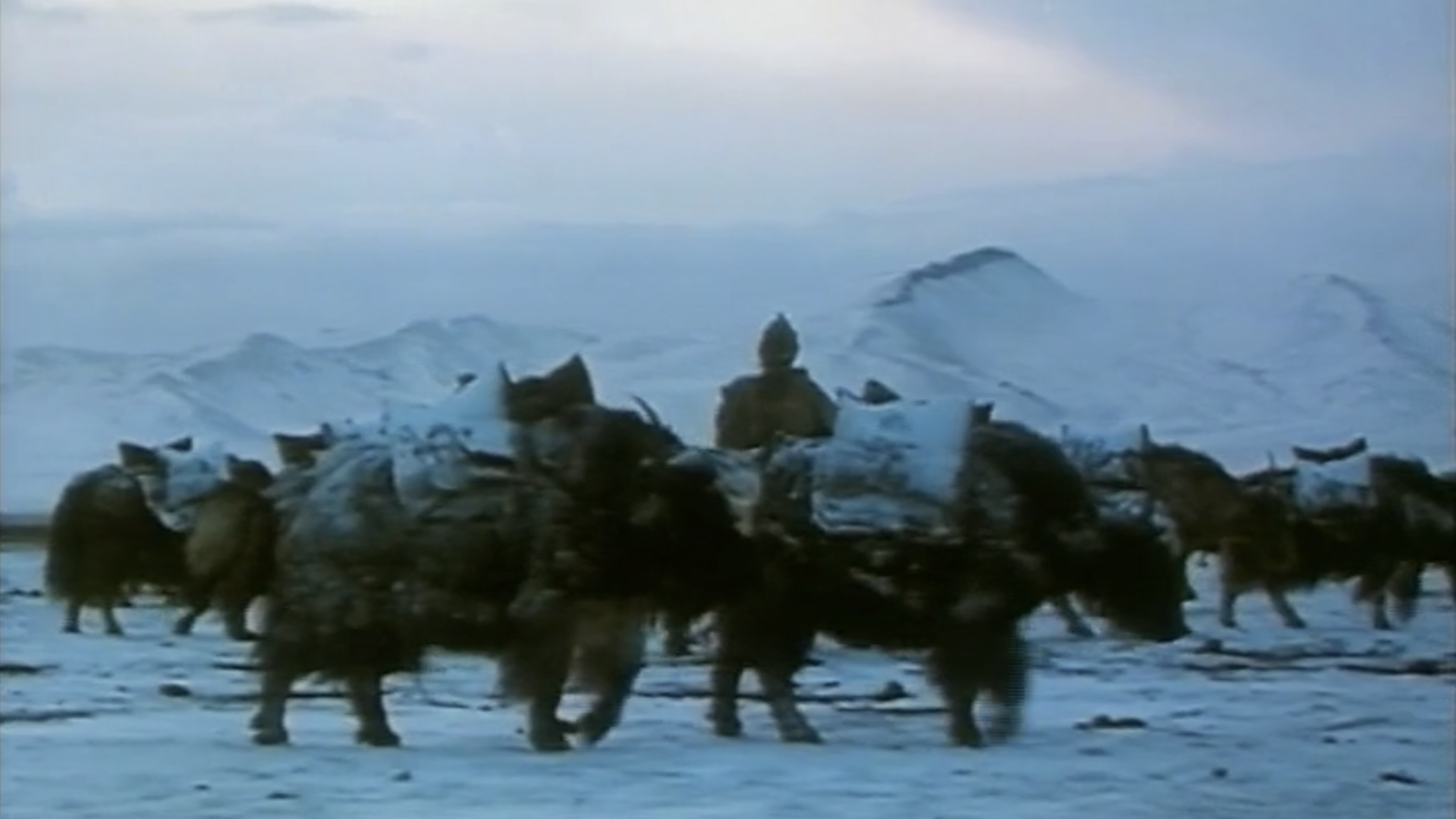 1997年德国和瑞士拍的纪录片。记录了藏北昌都的男人们组队去遥远的圣湖取盐的旅程。整部纪录片时常将近2个小时,没有任何旁白,除了最后打出的字幕表示出现代化进程对于传统文化的影响以外,完全没有任何政治说教色彩。也没有刻意地描绘高原的壮丽风光,除了偶尔地阳光,大部分时候的天空是萧瑟的,破败的土胚房子,黑灰色的藏袍,红色的发饰,藏人黑黝黝脸庞明亮的眼眸,有种萧瑟粗粝的原始美感。背景音乐也恰当好处,除了点睛的几处弦乐,便是藏族女人吟唱的古老歌谣和男人劳作时的唱的民歌。