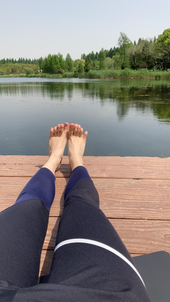 那一次,好像是我先到,后来欣捷来了,两人一起坐在西湖边,她那个时候很喜欢拍自己的脚丫子。好像是这一次我们去吃了老头儿油爆虾但不是很确定了。