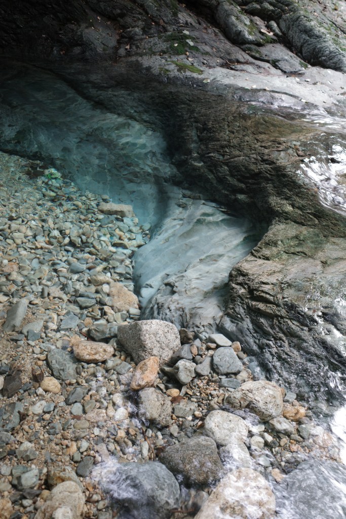 离开的那天上午,小汐他们还在睡觉,我和燕子起的稍早,去了距离我们民宿很近的后山,说是那里也有一个小瀑布。最后瀑布倒是没见到,因为要穿过一个阴森森的寮洞,我没有溯溪鞋不便前往。但是从自来水厂到这个寮洞的这一段山谷小径,感觉到一种隐秘的气息,让人意犹未尽。当时也说不清楚这种感觉从何而来,直到前两天在网上看到宰其弘老师的一篇介绍雁荡山水的美文,精准又诗意的文字三两下就把我的感觉描述清楚了:山谷的入口处保留着最传统的浙南民居,沿青石板铺成的山径走入,伴着水声,很快可以看见一条湍急的溪流从山间奔涌而下;山涧两旁高山耸峙,植被虽然茂盛,却不会妨碍到观察山岩的体势,尤其是山根入土处的结构尽显无遗,这在南方山水中是颇少见的。在雁荡山中,像石门这样的天然风景很多,并且由于山的面积不算太大,无需跋山涉水深入山脉的腹地,往往在路边转一道弯,便从人间进入山水,走过半小时、一小时的山路,身体与心灵便全都遁入山林,远离世俗的喧嚣。