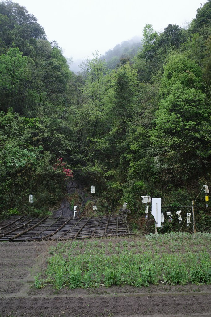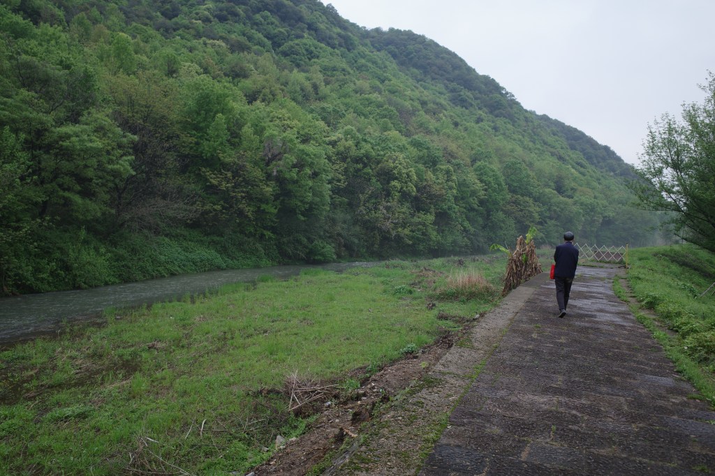 细雨蒙蒙,云雾缭绕,这仙气飘飘的田园牧歌景象深深地吸引着大伯,他开心地像个孩子,一路上频频拿出手机拍个不停。而我对田里的作物充满了兴趣,这里的菜地里整整齐齐地种着豌豆,蚕豆,土豆苗,茄子,包菜。这些菜绿油油的,品相很饱满,一看就充满了生命力。一位老妇穿着薄衣赤脚穿着凉拖举着铲子在田埂里一小片一小片地把泥土上的苔藓铲除,把沟挖地更深一些。我说你不冷吗?她笑着说我干活干地都热死了。