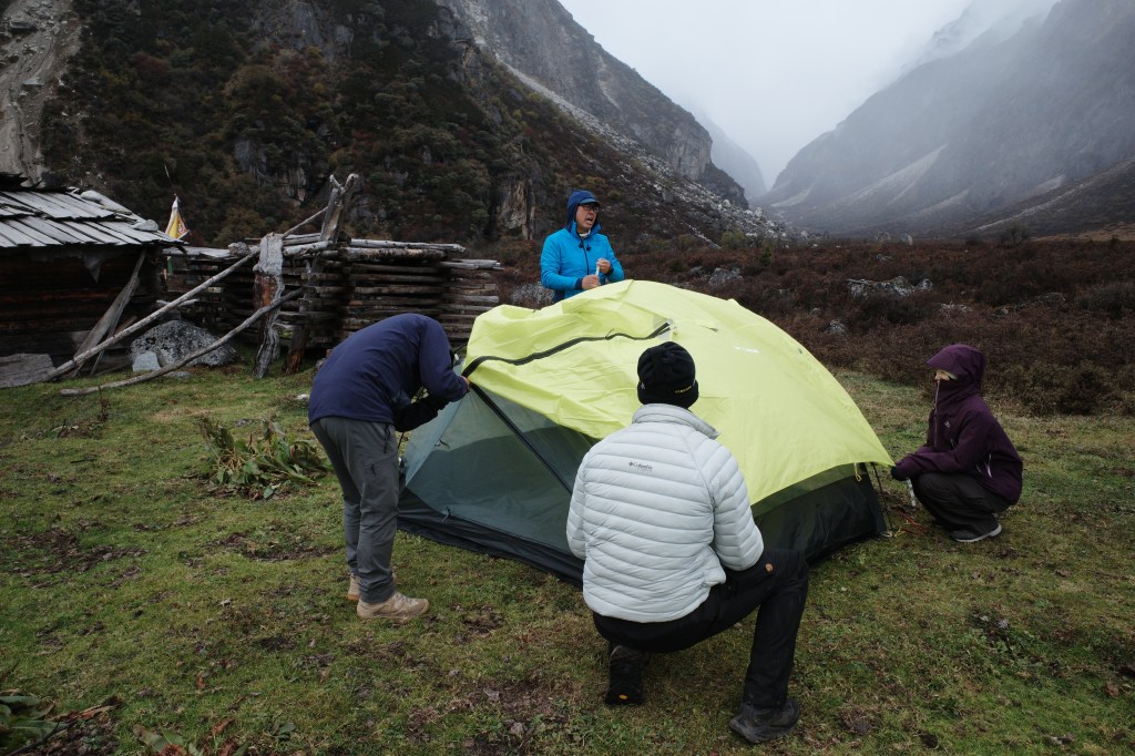 当我最终看到了远方的营地,如释重负。天光还亮着,牛棚里,马帮已经生起了火,女人们烤着火,而 男人们忙里忙外,去河边取水,过滤水,烧水,准备做饭… 一碗云南米线下去,终于感觉回魂了一些,但饭后大家围在火塘边聊天,又开始缺氧头晕… 我问破山,如果明天起床后状态还是不佳,是否有出山的方案… 气氛瞬间凝重起来,大家纷纷开始安慰我,说你不要想太多啦睡一觉就好啦之类的话。我说我只是做好最坏的打算,如果能坚持肯定还是想跟大家一起走完的… 破山教我一招,不断喝水,不断上厕所… 就会好了,可是当时的我完全没有踏出温暖的牛棚去野外尿尿的勇气和力气。