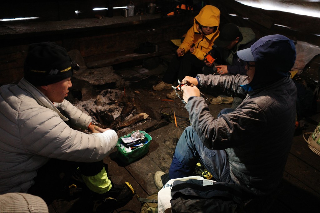 下午整理行前装备的时候遇到了另外一对小伙伴,涛哥和他的女朋友,不过这两人完全没有CP相。他们带的各种吃的我感觉吃一个月也没问题… 破山给了我们一个坏消息,根据天气预报,未来几天的降雪量将达到xxx, 反正就是非常非常大的雪,毕竟老司机如他,看到这个数字都一脸的不敢置信。我们也只能接受,同时心里依然祈祷天气会转好。