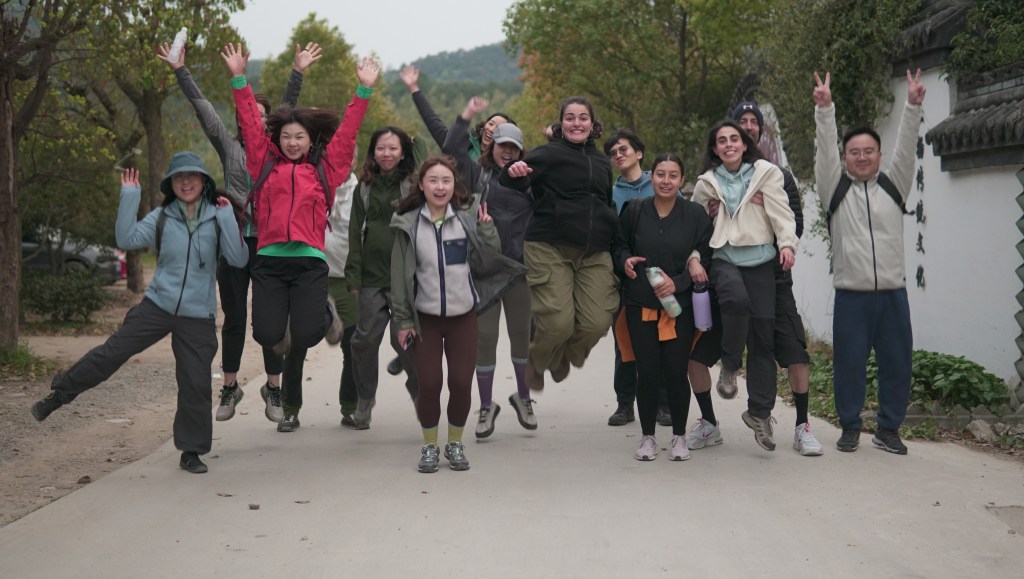 7点准时从上海体育场集合出发,依然是11个人的小团,意外地看到鹏鹏也来了,他竟然还跟大家介绍说:这位也是我们的领队… 😅有点尴尬啊。 然后还看到了isumi,上周一起参加南宋石刻的广州女孩。还有一个女孩觉得面熟但是想不起来哪里见过,后来她说她就是上次在地铁上被我安利了山猫的那个女生。我超级兴奋地跟isumi说了这事,我们都觉得不可思议。那天的回家路上,空旷的三号线,她跟我们坐在同一排,大概是看我们也是一身户外装扮就问我们今天去了哪里,后来发现大家都是去宁波,虽然是不同的地方,但是都是同款的车程double,徒步的公里数减半。我借机向她介绍了山猫,她当场就关注了小红书的账号,然后这周就一起来参加了活动,而且她竟然还是从苏州一早坐火车来的,参加完活动后当天还要赶回苏州。我就问,谁说infp不适合做销售!!!