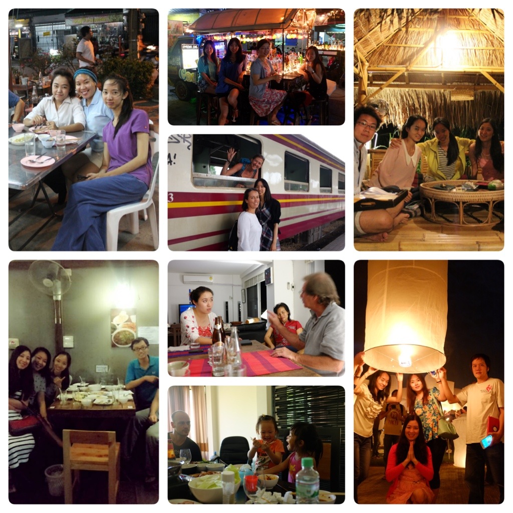 洁尘姐和她的男朋友新宇哥。第一次和他们见面是在电梯里,其实来这里后我没有怎么去混中国人的圈子因为很多人不是做房地产的就是做旅游相关的,我一点兴趣都没有。而且有时候你以陌生人的身份好心提个醒帮个忙还会被人以为你是不是有所图,所以有时候听到旁边讲着中国话我也不会有什么反映。可是第一眼看到他俩时就觉得很有亲切感,于是主动搭讪之。我住1011,他们住1017,很自然地一来二去我们就走近了。在上海的公房里我家和邻居的关系就很好,他们甚至有我家的钥匙下雨了会帮我们收衣服,儿子女儿的婚礼我们也都会去参加。所以我好开心在这里我也能有缘遇见那么好的邻居,当然我们的关系绝非只是邻居而已。他俩都在清迈大学读经济学博士,我因此又认识了一波CMU的小伙伴们!年夜饭,天灯节,泼水节,都是和他们一起度过;我的生日也是和他们一起过;下馆子玩杀人逛衣服也都是和他们一起。当然大多数时间他们都呆在图书馆忙着写不完的论文做不完的研究,而我是那种脚踩西瓜皮滑到哪里是哪里的人,有时他们也要给我上上发条跟我谈谈人生目标,我也就听之任之接着混日子。虽然大家的处世态度不同,但这并不妨碍大家成为真心的朋友。我在清迈的时光30%独处30%和Monica和几个同事剩下的都是跟他们混,谢谢大家的关心照顾,希望以后回国再见;)